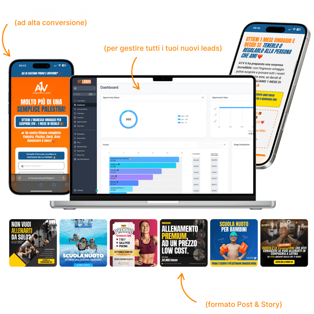 🛠️ Tutti gli strumenti di cui hai bisogno: template grafici per le tue ads, CRM completo di automazioni, landing page ottimizzate e form di contatto pronti all’uso.