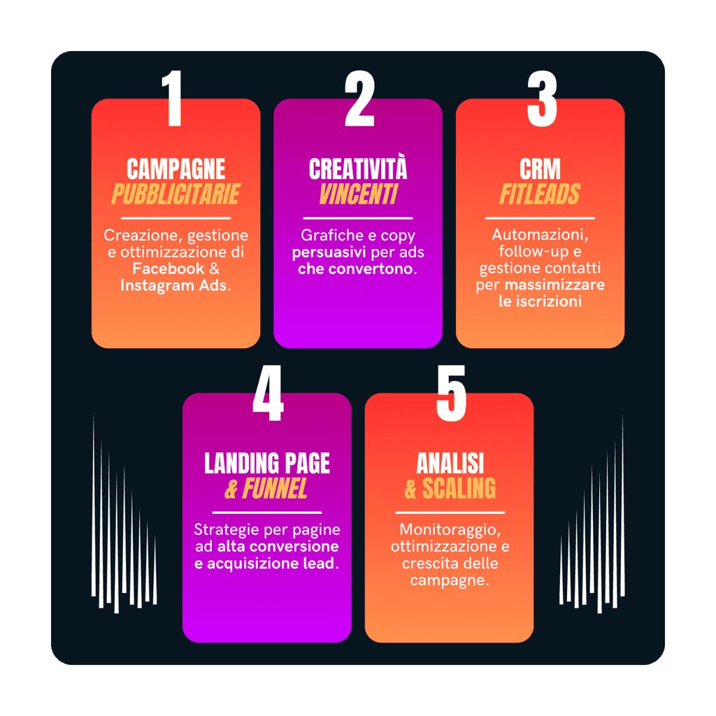 🔥 Una macchina da lead: acquisirai le conoscenze e le abilità per gestire autonomamente le campagne, trasformando il marketing del tuo Centro Fitness in un asset strategico.