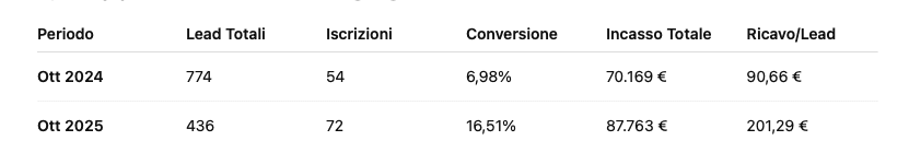 Conversione: da 6,98% → 16,51% (+136,5%)